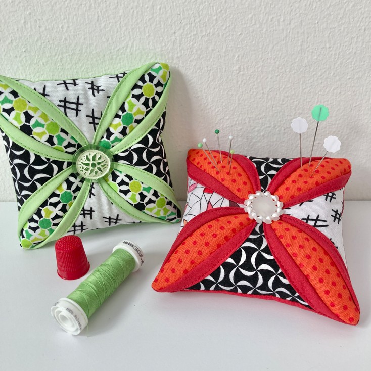 Mit diesem Nadelkissen werden Sie ein Bijou für Ihren Nähplatz kreiren und dabei einen Einblick in die Patcwork-Technik "Cathedral Window" erhalten. Raffinirt gefaltet, mit eingenähten Resten Ihrer Lieblingsstoffe und einem extravaganten Knopf ausstaffiert, nähen Sie sich und vielleicht auch Ihrer Nähfreundin etwas ganz Ausgefallenes!