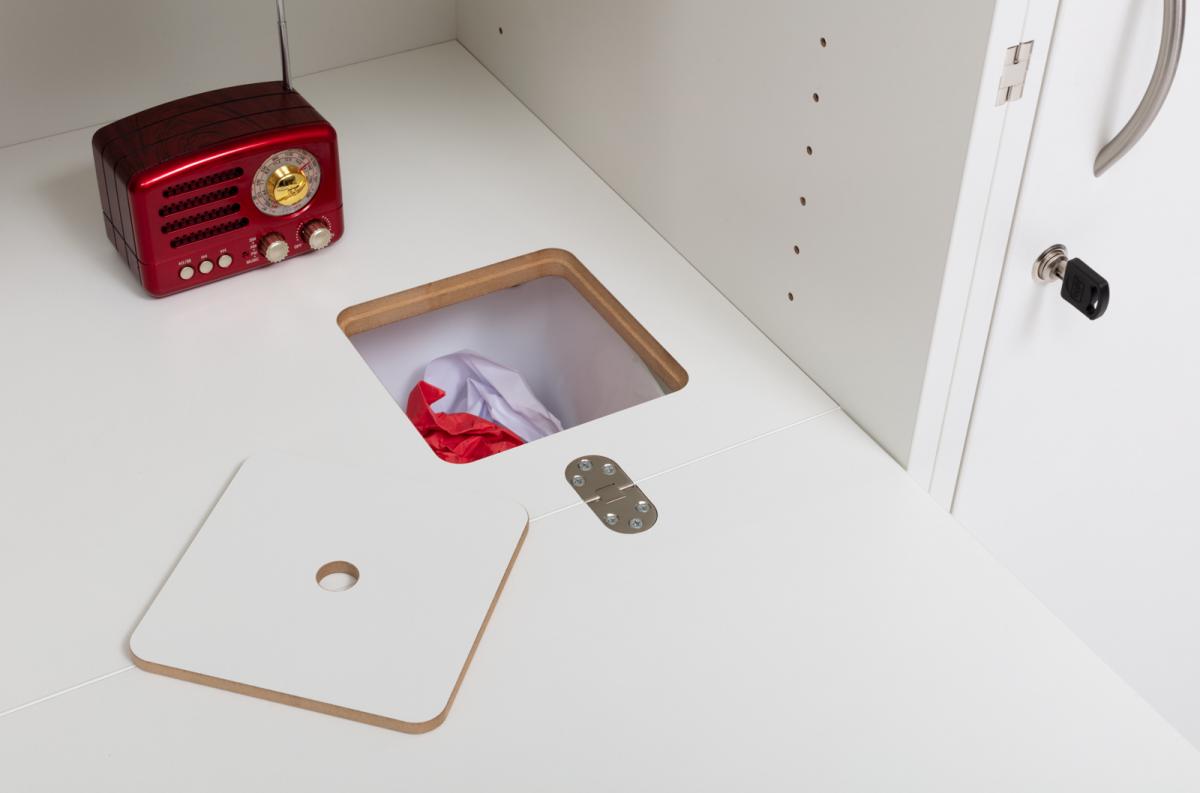 Der CUBO sew-flex ist mit einer klappbaren Arbeitsplatte für die Näh- oder Overlockmaschine ausgestattet. Zudem bietet er viele verschiedene Zubehöreinteilungen für alles Nähzubehör.