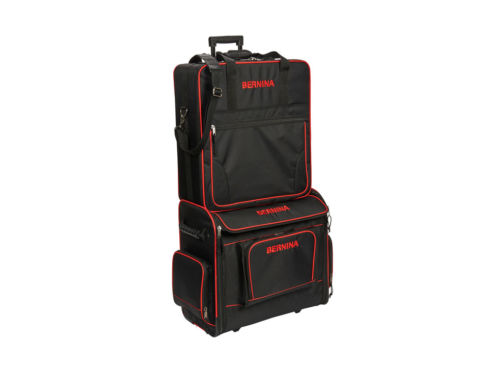 Die Stickmodultasche L für die BERNINA Stickmodule S und M ist stabil und leicht. Durch die allseitige Polsterung und das hochwertige Aussenmaterial ist Ihr Stickmodul optimal geschützt. Die Stickmodultasche L lässt sich am Teleskophandgriff des Trolley L befestigen oder bequem am Trageriemen transportieren.